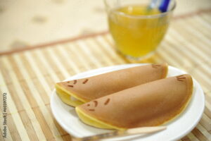 また、「若鮎」は初夏の頃、鮎の稚魚が清流を泳ぐ頃に和菓子屋さんの店頭に並んでいますが、生地の中に挟んである求肥が冷たくて、見た目も可愛くて、初夏の爽やかな清流と鮎のピチピチはねる様子が浮かぶようです。