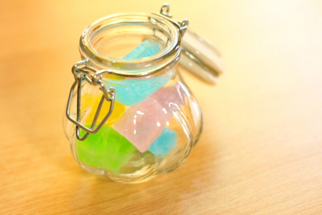 ただ、琥珀糖って暑い夏の日に、見た目がキラキラして涼しげに見えるのですが、必ずしも夏だけのお菓子とも言えないですよね、