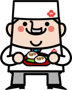 梅の刻印が入った鉄板で焼くので、焼きあがると表面に薄っすらと梅の刻印が入っている「焼き菓子」になります。