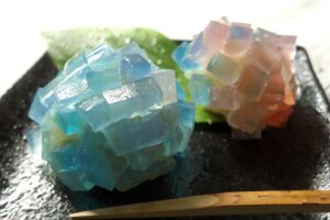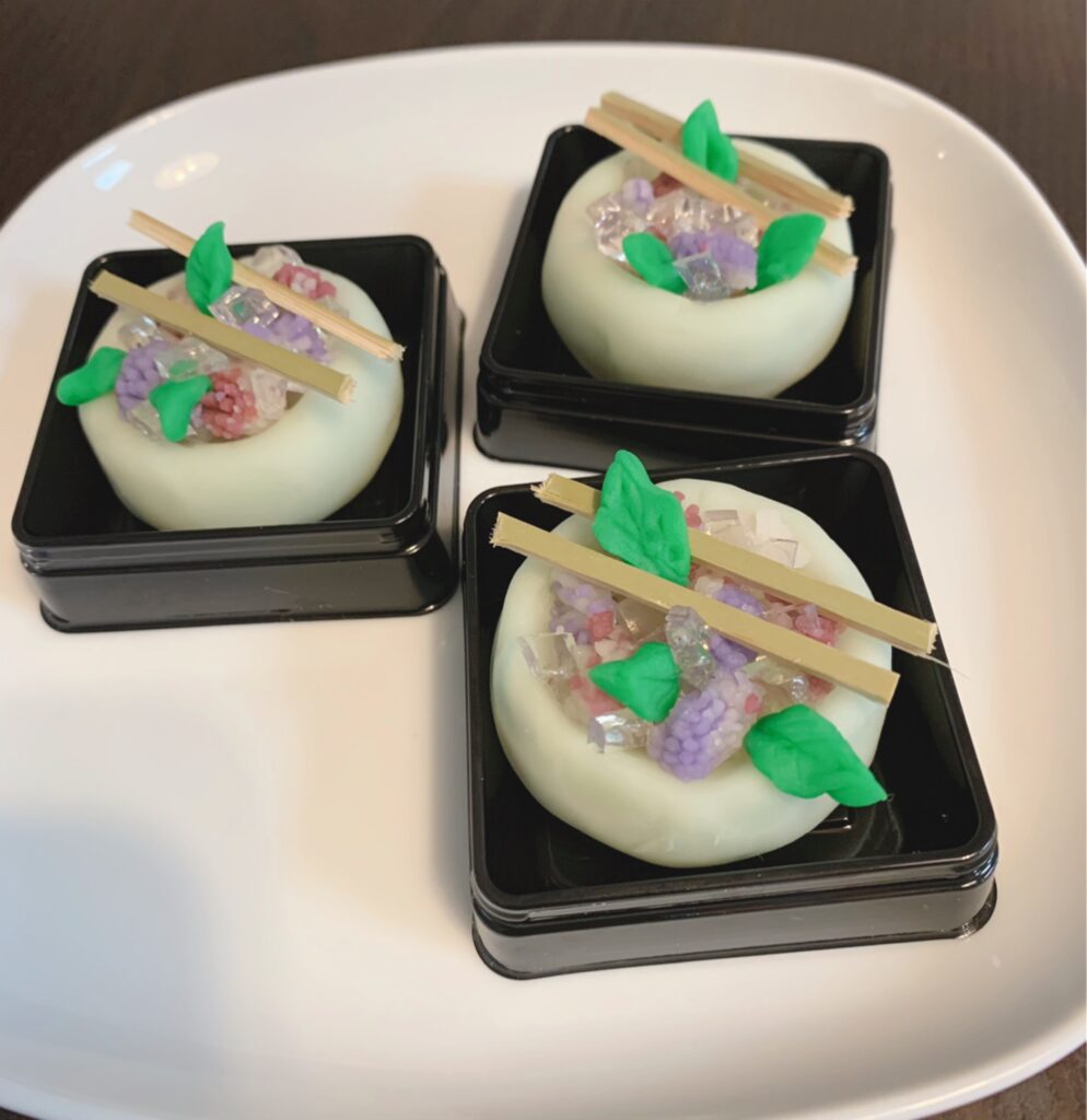 あと、よく見られるのは紫陽花色の寒天で包んだ紫陽花デザインもよくありますよね、これもおすすめしたいです。