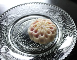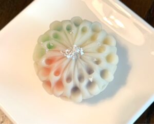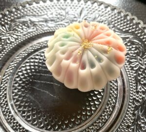 特に、「包みぼかし」という技法で、白い練り切りに着色した練り切りを張り付け、そこに中餡を包み込む(包餡)ことで、ピンクや黄色、青、紫などの色がうっすらと綺麗に浮かぶわけですが、