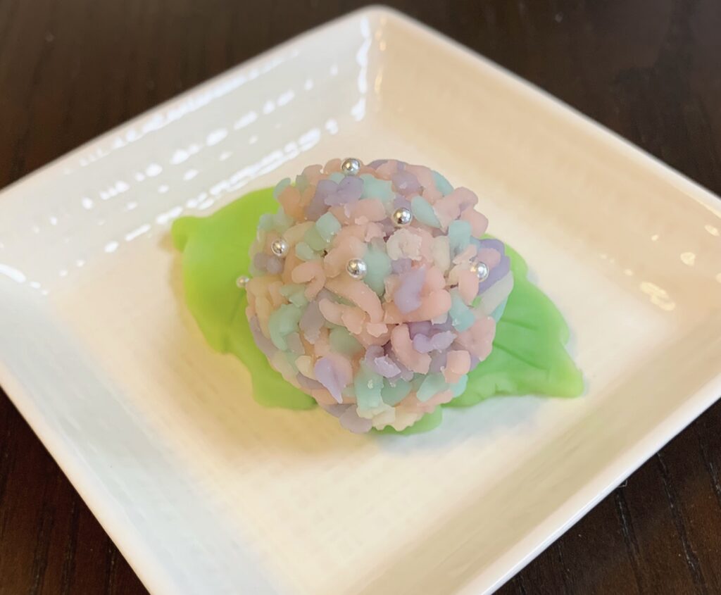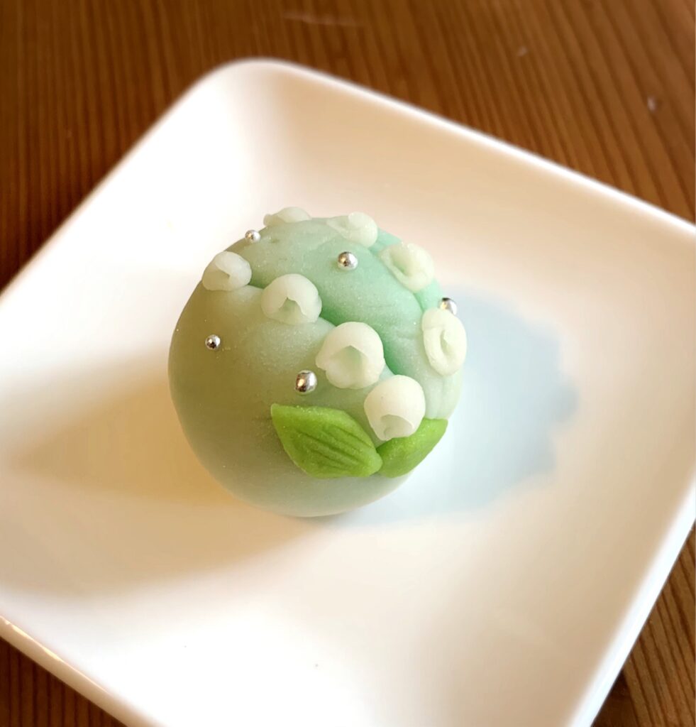 和菓子練り切り、季節の花「紫陽花」と「すずらん」