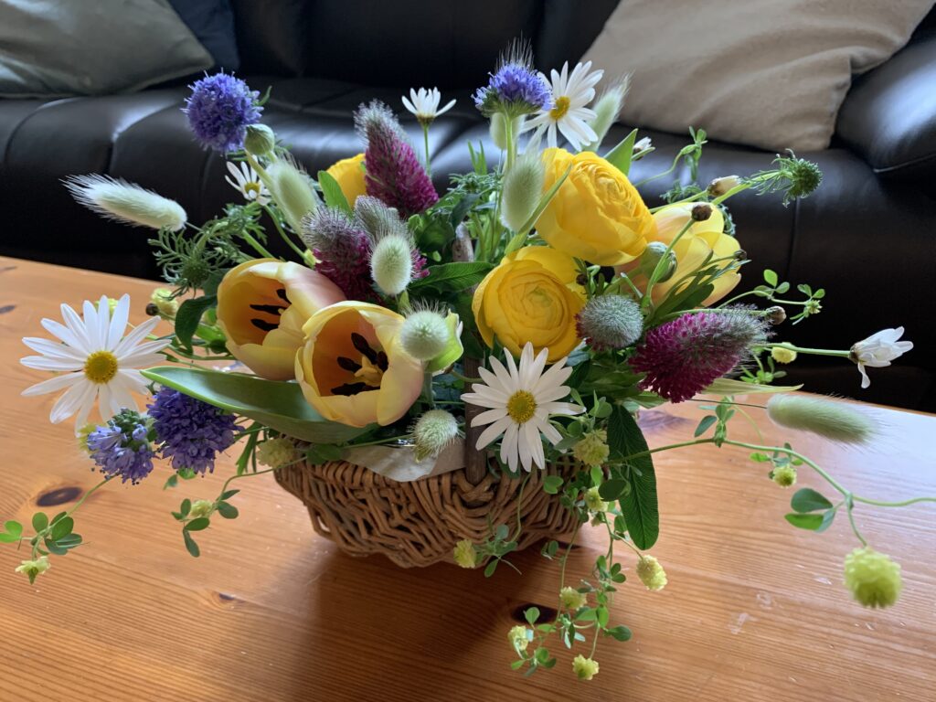 イースターをイメージした花籠をアレンジしてみました。
