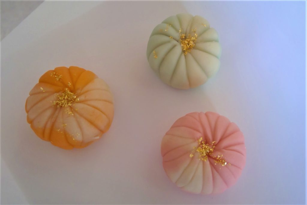 練り切り餡の色合わせ次第で、色んな着物を表現できるなぁ、、って