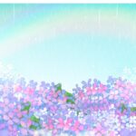 今回は、梅雨の時期の虹と雨に濡れる紫陽花を練習しました。