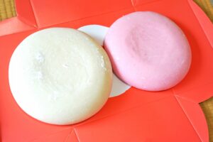 赤飯と紅白餅が祝い膳として出されるそうです。